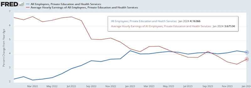 「教育・医療」の雇用状況を見てみます(「教育」はPCEでは「他のサービス」に含まれます)。