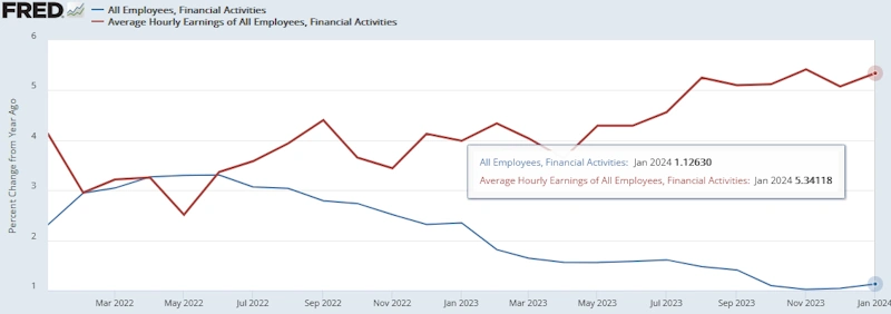 【金融(雇用者数と平均時給)[前年同月比]】